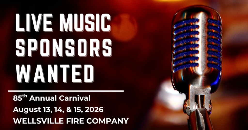 | Planning has begun for this summer's carnival which will be held August 13, 14, & 15, 2026. We are currently looking for Sponsors for our Bands who provide live music during the event. We have several levels of sponsorships availaible. Please fill out the form and email it to info@wellsvillefire.com.